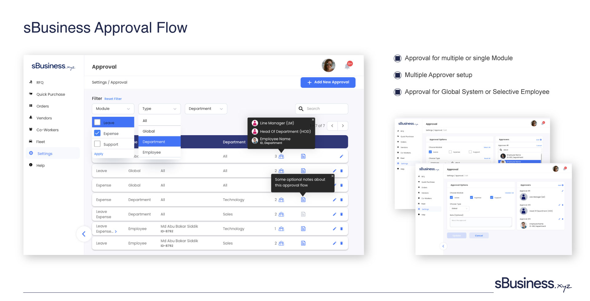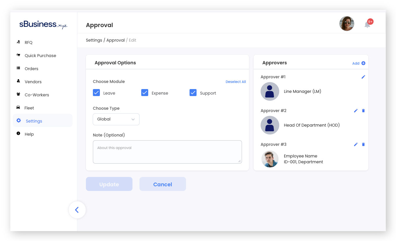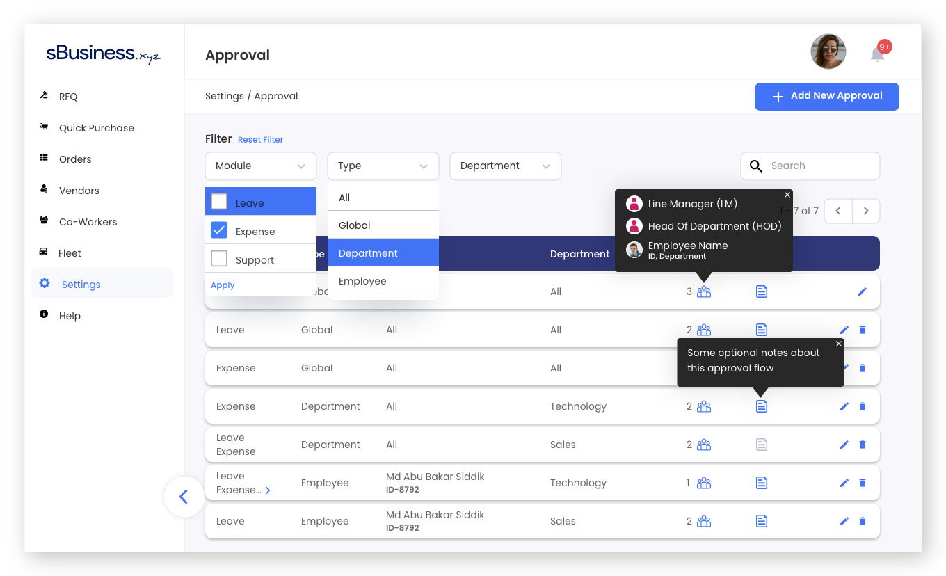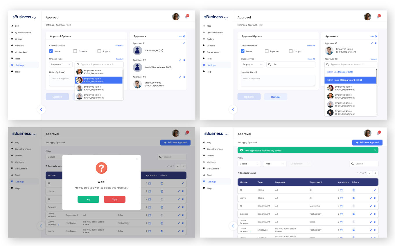 In sBusiness HRM management there are modules like leave, expense, support ticket etc. which require approval system from higher authorities. To solve this issue the approval system was designed.