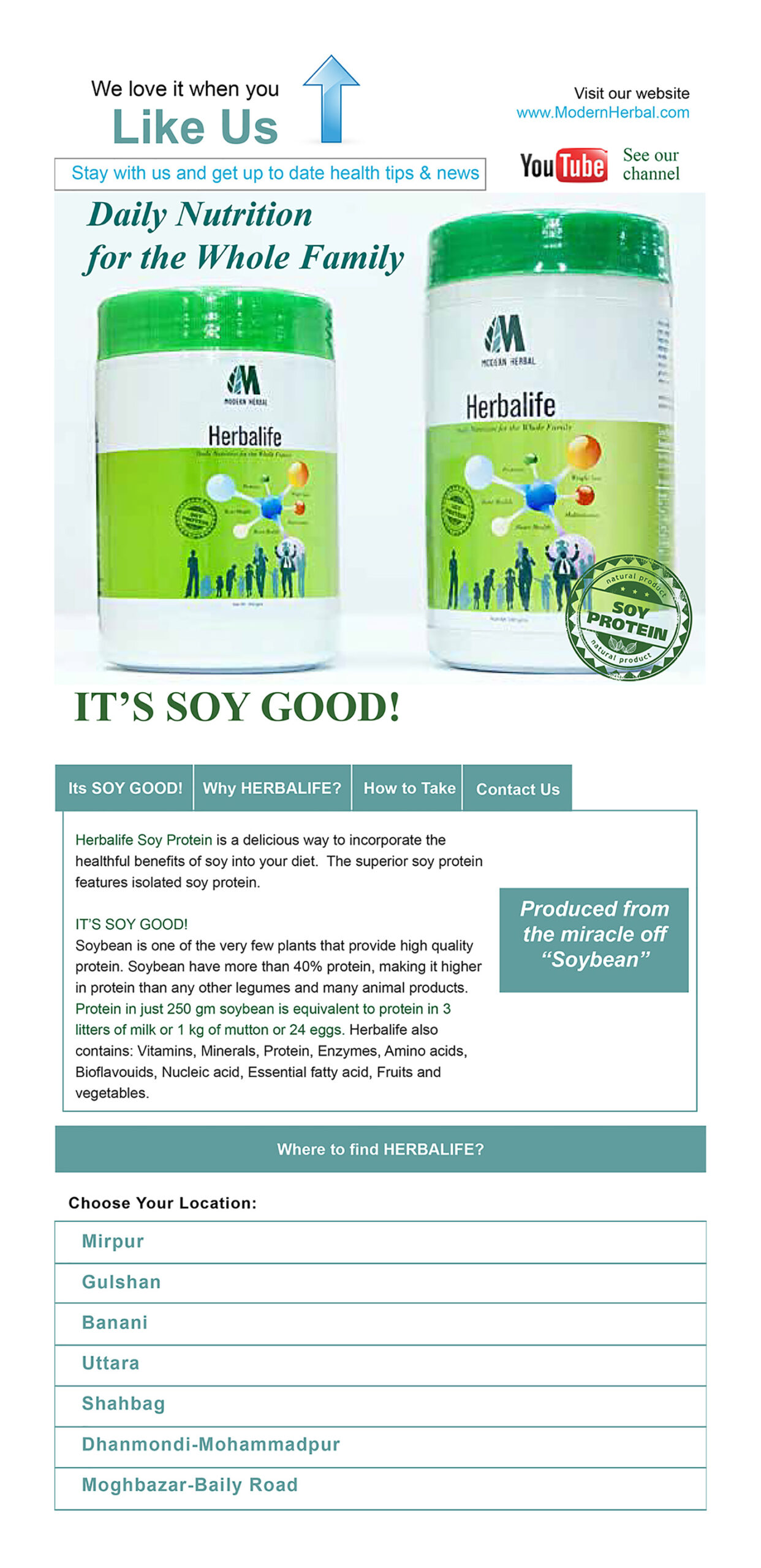 Facebook page app design for Modern Herbal Group